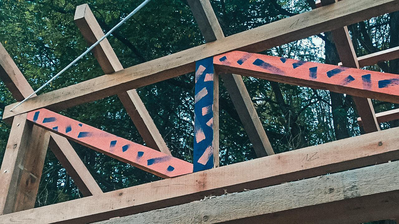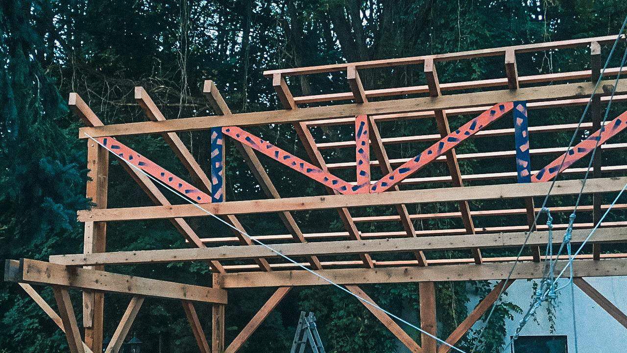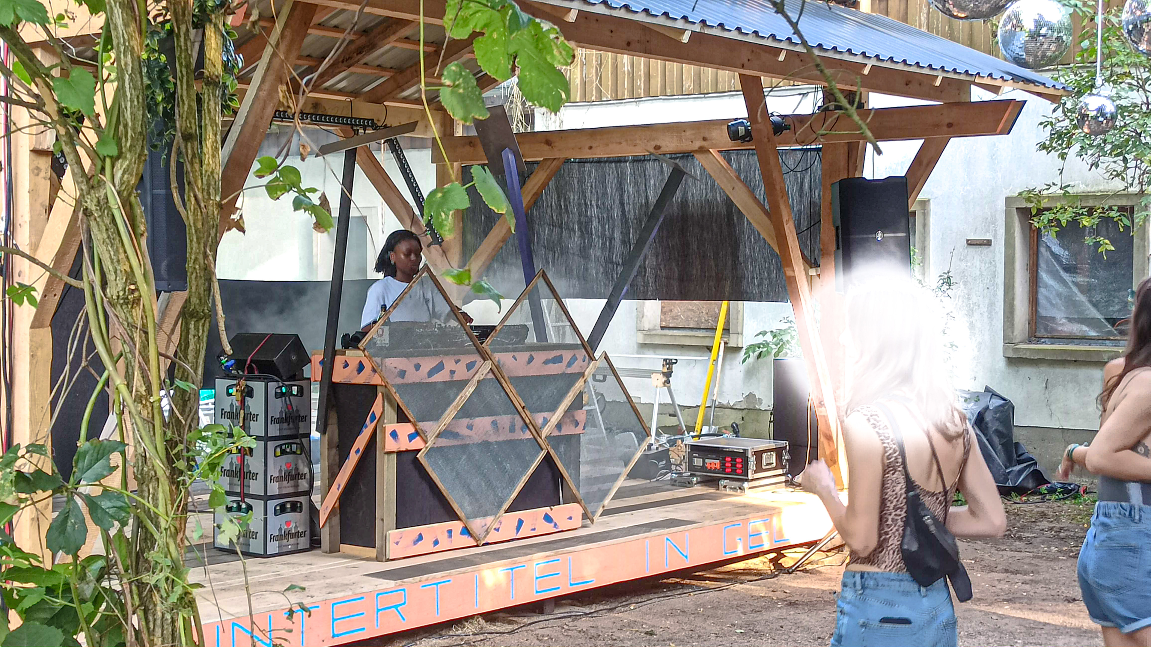 "For this project I worked with a festival stage crew and designed a hand lettering (UNTERTITEL IN GELB) for the stage. Additionally I added a minimalistic decor, by working with two colors and simple brush strokes to the crew's concept of a natural stage construction in half-timbered style. Building team: Elias Trabucchi, Clara Schlüter, Louis Weber, Tom Las Kohrs, Ludwig Kroll"